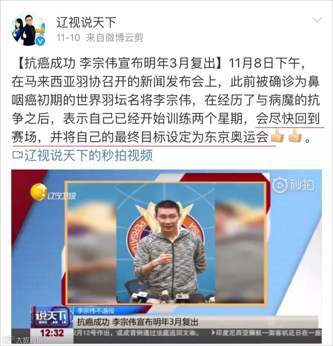 过去半年,他经历了人生最困难的时期,癌症这两个字对一名职业运动员而言是一个巨大的噩耗,他曾一度深陷绝望,最初的一周每天哭泣,寝食难安,在医生的建议下,李宗伟赴台湾接受了33次质子治疗,每天治疗约35分钟。过程十分辛苦,但最终结果良好。