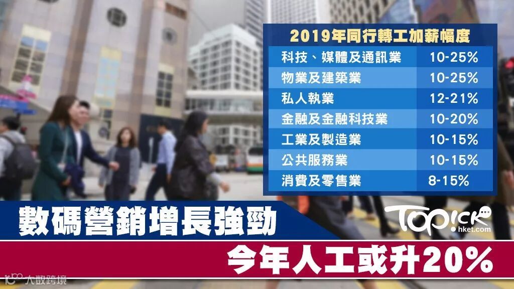 根据报告,2019年电子商贸、金融科技、数码营销、数据分析等科技领域人才极缺,同行转工加薪平均12至20%!