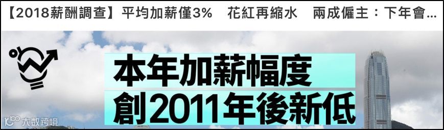 结果显示,2018年香港的平均加薪幅度3.2%,创2011年以来新低!
