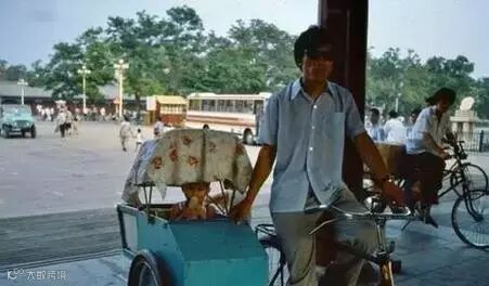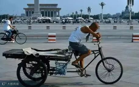 天安门广场上的三轮车夫,