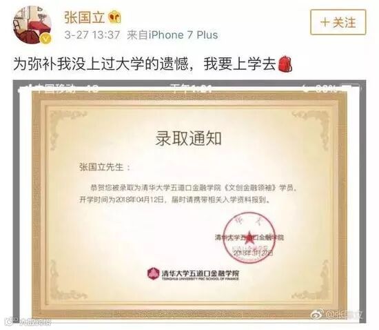 63岁时还去清华大学五道口金融学院读书充电……