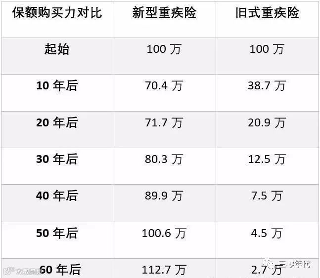 a:旧式的(中国大陆普遍的)重疾险都是保额固定形式,投保时保额100万,而当20年后,30年后,40年后,这个保额的数值仍然是100万。