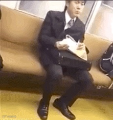 一个日本的上班族,在深夜的地铁上,边吃面包,边哭泣。
