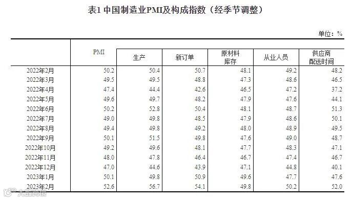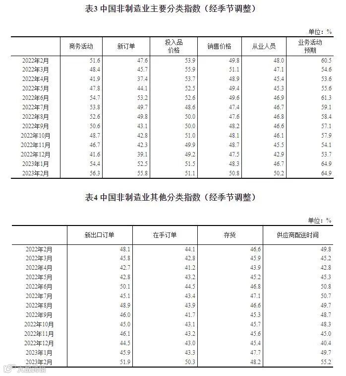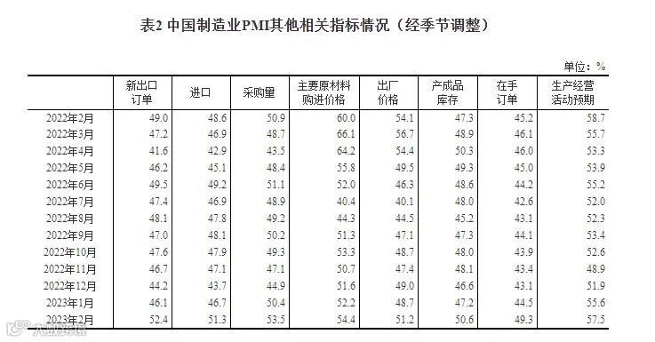 2023年2月中国采购经理指数运行情况