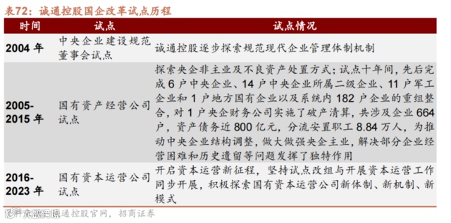 2005年,国资委确定诚通控股为国有资产经营公司试点,探 索中央企业非主业及不良资产市场化、专业化运作和处置的路径。2016年7月,诚通控股被确定为国有资本运营公司。