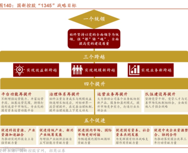 国新控股立足增强国有资本流动性,结合 运营公司以财务性持股为主、投资驱动属性强的特点,围绕“资本、人才、技术”三大要素的优化组合,构建完善轻 资产运营模式,着力打造具有全球竞争力的一流的综合性国有资本运营公司。