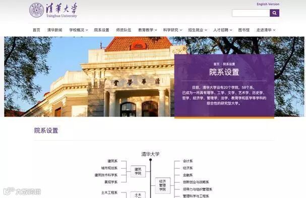 目前,清华大学官网主页暂未更新院系名单以及招生信息。