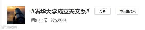 截至今天上午,清华成立天文系的话题已经有非常多的网友关注:
