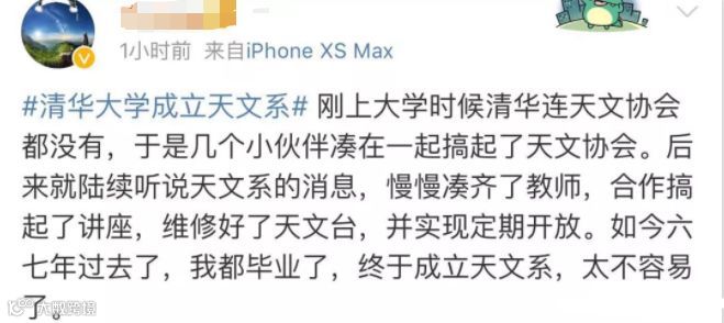 昨晚,@清华大学 官方微博发出消息,清华大学成立天文系!