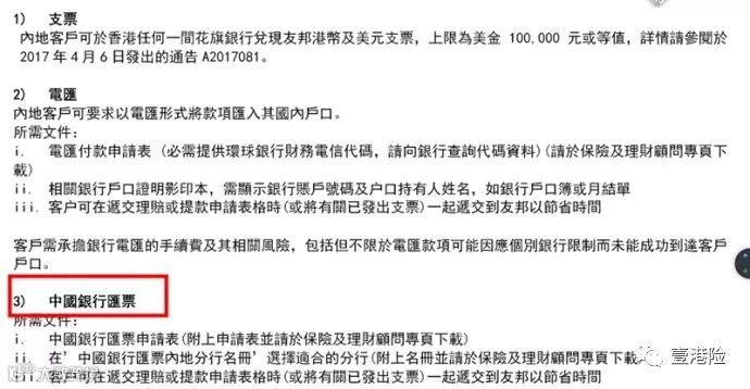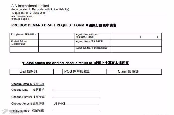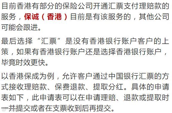 香港保险理赔款一般以支票为主,如果有香港账户的话更方便直接入账到本人香港账户,但是由于种种原因依然有客户没有香港账户,那么万一发生理赔的话我们应该怎么办?尤其是目前香港保险公司的支票已经很难在内地银行托收,好消息是,汇票——香港保险公司另一种支付方式对于无银行账户的客户是非常方便的。