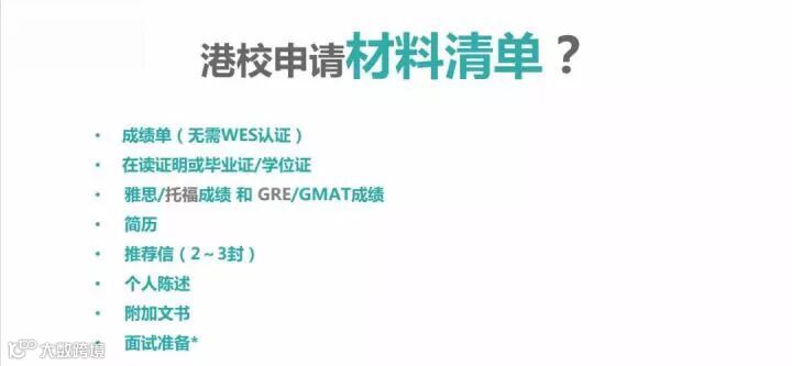 例如本科学习成绩单(要求一般达80分,但也有例外的情况,但至少不能低于75分)、在读证明/毕业证和学位证、实习证明/工作证明、获奖证书、身份证、港澳通行证等等。