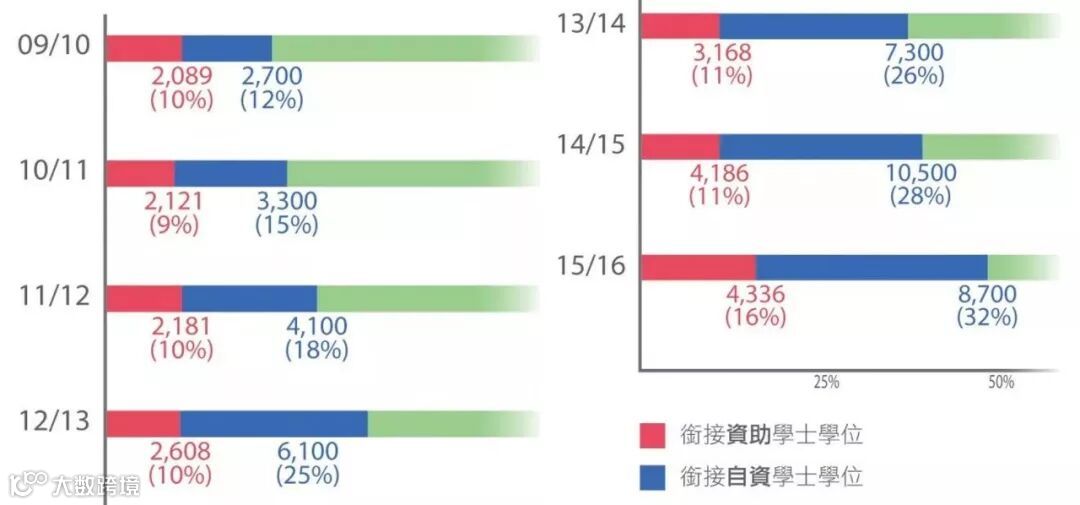 也就是说,大约只有13-14%的副学士学生,可以重新升学回八大高校就读获取学位。
