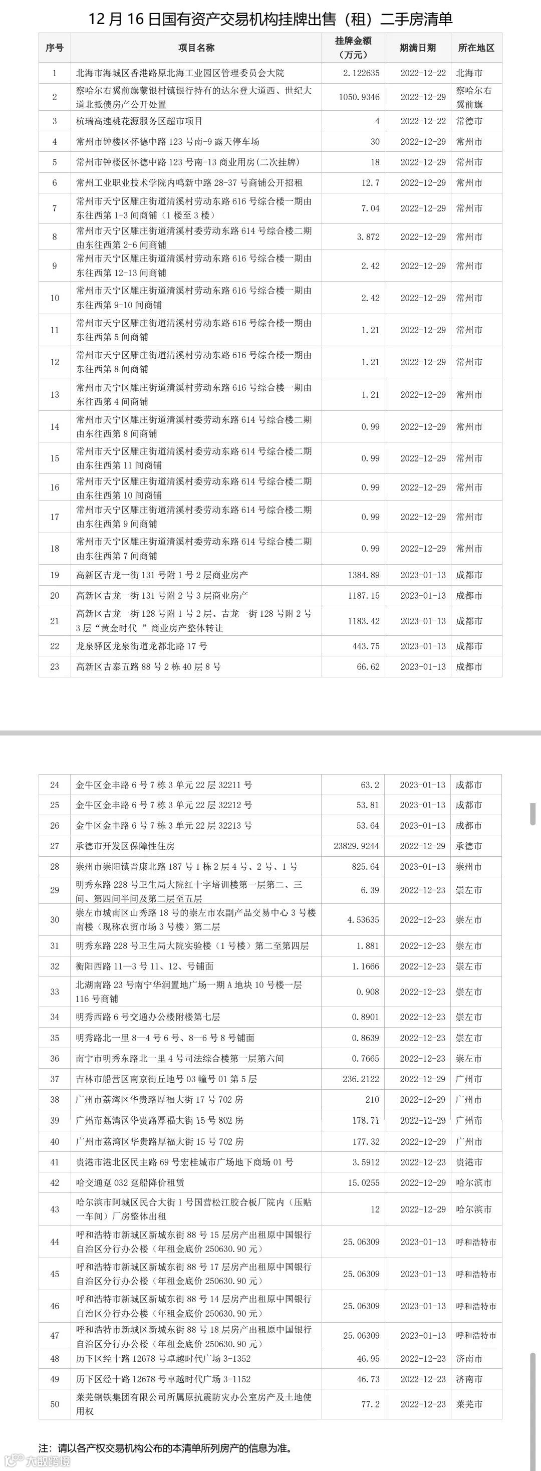 获取今日完整挂牌房产清单、联系方式,请关注“产权大数据”公众号,后台咨询