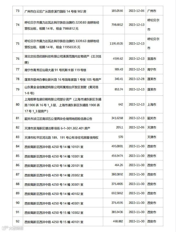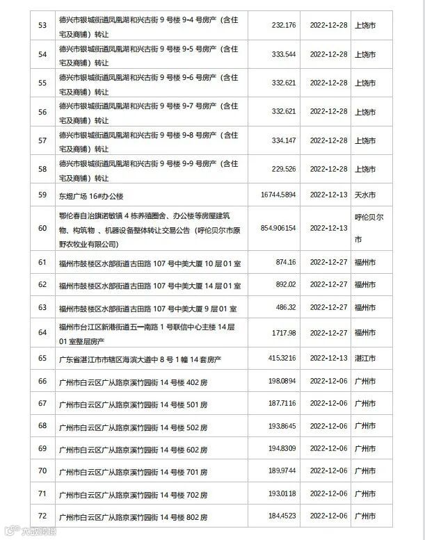 11月30日全国国有资产交易机构挂牌出售二手房信息 产投数智