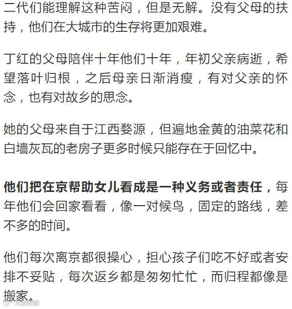 因为上学很早,下学也很早,任何在职场上有想法的父母基本都没办法完成接送孩子的任务。于是长辈的余热再度发挥,他们从故乡启程,奔赴子女所在的地方,成为高龄的「漂一代」。