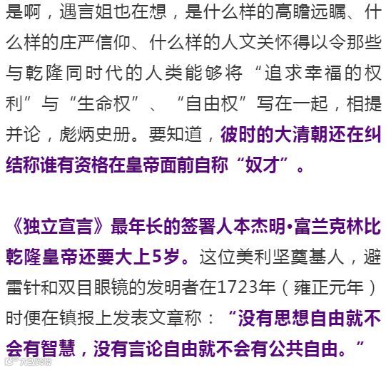 乾隆皇帝65岁那年,托马斯·杰弗逊在《独立宣言》当中写下了光芒万丈的伟大篇章: