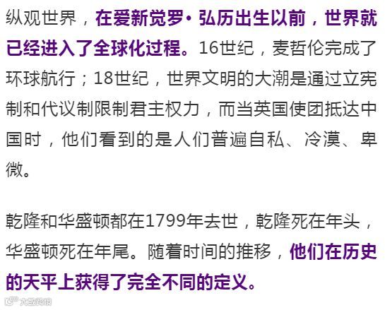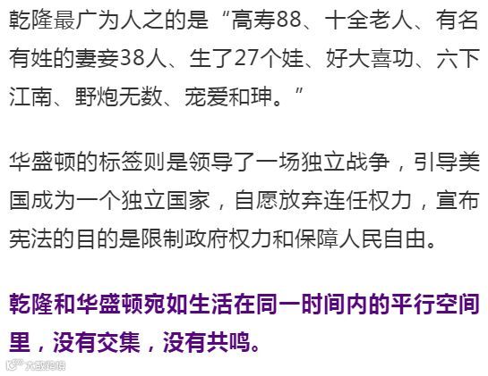 乾隆13年,孟德斯鸠发表的《论法的精神》成为三权分力原则的思想源泉;乾隆41年,《独立宣言》在费城发表,宣布了全球第一个非君主制国家的成立;乾隆54年,法国爆发资产阶级大革命;1795年,乾隆退位成为太上皇的第二年,华盛顿宣布拒绝连任第三届总统。