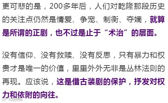 最近热播的两部后宫剧,主角都是乾隆和他的女人。网上就这两部戏的三观、制作、剧情、美工、人设,各种互撕。主流观点是:《延禧攻略》更具现代性、《如懿传》更有时代感。