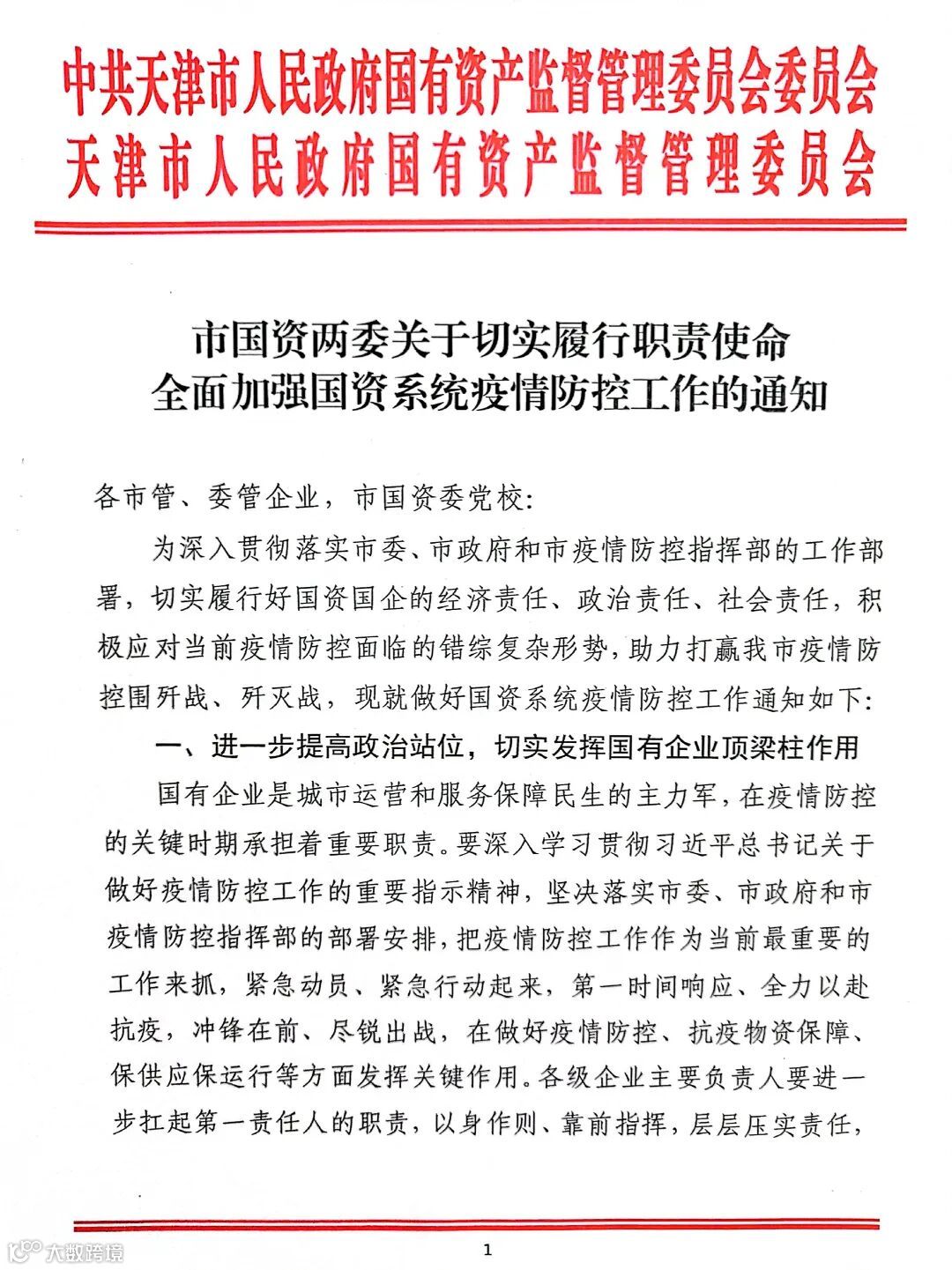 导读:天津市国资两委全面部署国资国企抗疫工作