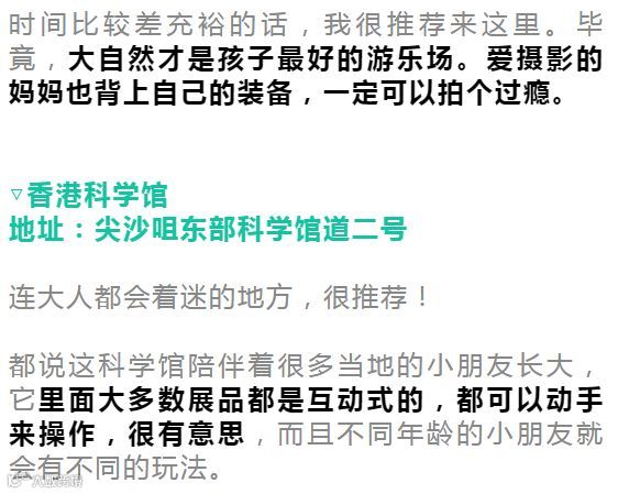 我就请她整理了一篇文章,聊聊自己平时带孩子在香港住的玩的地方。我自己是不太喜欢看那些所谓的最全攻略什么的,基本上都是在网上抄来抄去,太水了没什么参考价值。一直特别想请这样在本地生活的妈妈,提供一些实实在在的攻略,让我们去了真的觉得钱和时间花得值的那种。