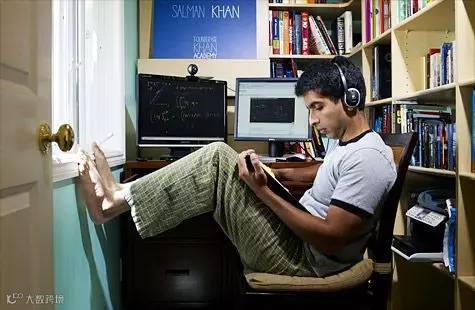 在美国,有2万多所学校,上数学课时老师已经不再讲课,让学生观看可汗的视频,老师只负责答疑。