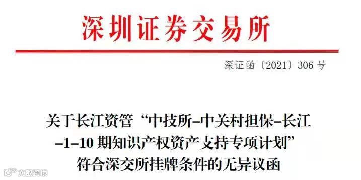 据中国技术交易所(北京知识产权交易中心)披露,“中技所-中关村担保-长江-1-10期知识产权资产支持专项计划”在深圳证券交易所审核通过,总规模不超过人民币10亿元,这是北京市首单专利许可知识产权资产证券化项目。