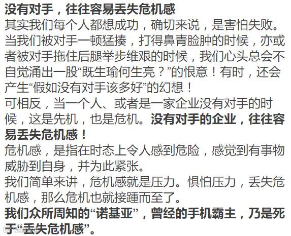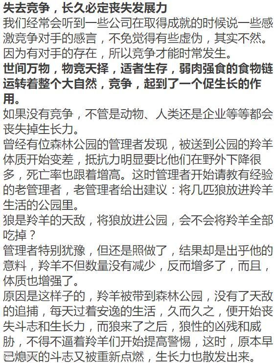 竞争其实不可怕,愚者恐惧,于是抑制竞争,智者珍惜,所以直面竞争。