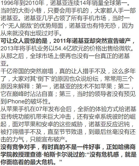 不管是兴盛还是走下坡路的企业,这些都值得我们借鉴,我们能让自身还有企业得到发展,只有吸取前人的教训,不断地寻找竞争对手,珍惜竞争对手。