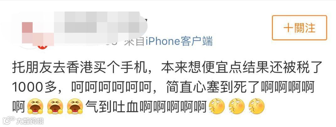 这位小伙伴同样是带手机回内地,结果很不幸被税了一千多...