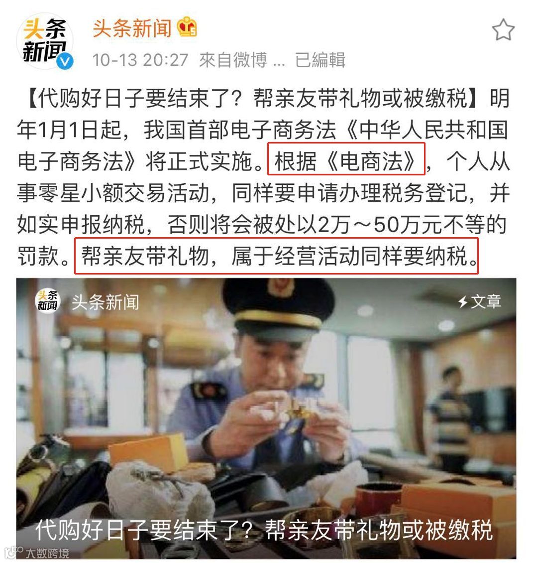 不慌,小伙伴们以后就可以用下面这个理由拒绝帮买了:电商法实施后,以后帮亲友带礼物或被缴税!