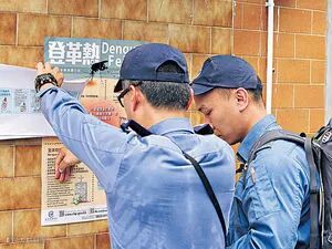 民政署、區議會、鄉事委員會及民安隊到長洲聯合滅蚊,並向市民加強宣傳滅蚊。