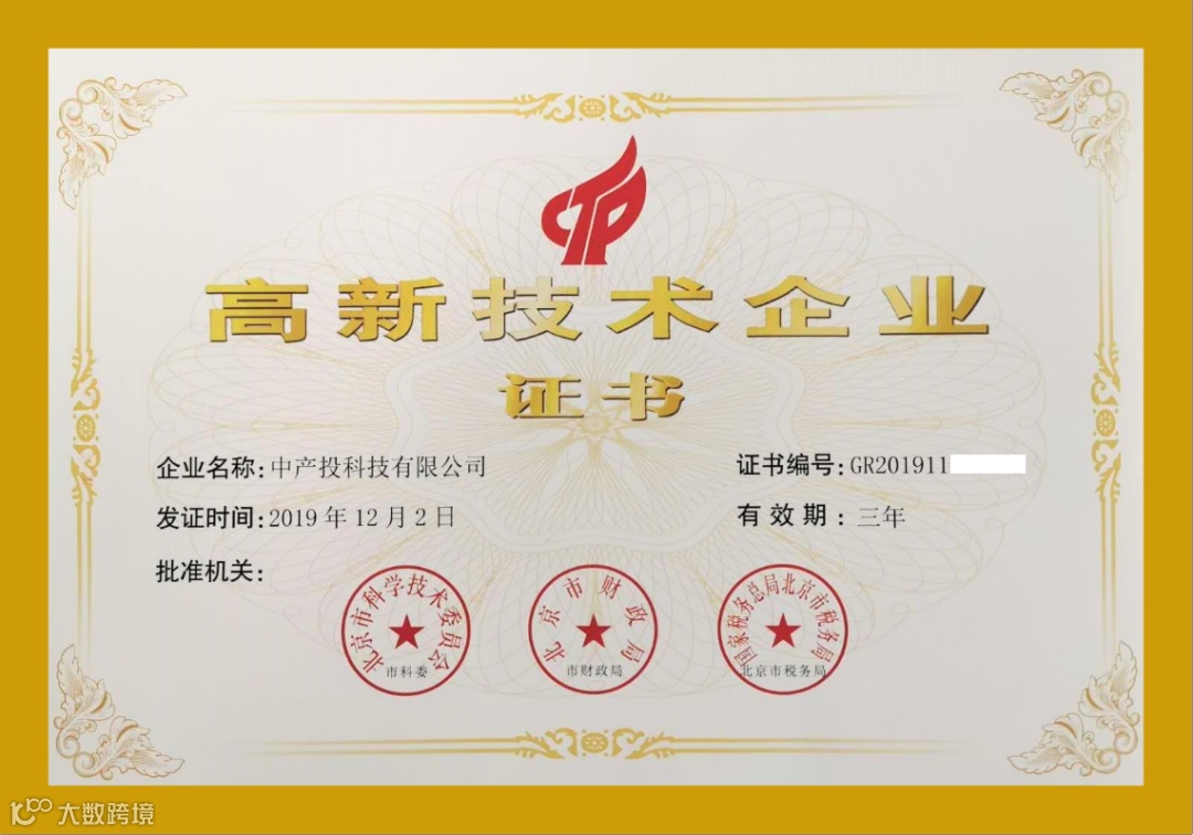 近日,在我国疫情防控阶段性成效进一步巩固,复工复产取得重要进展的振奋时刻,中产投科技有限公司凭借专业的人才团队、雄厚的技术实力、持续的创新能力和规范的企业管理,经北京市科学技术委员会、北京市财政局、国家税务总局北京市税务局批准,被成功认定为 “国家高新技术企业”,并正式取得证书。