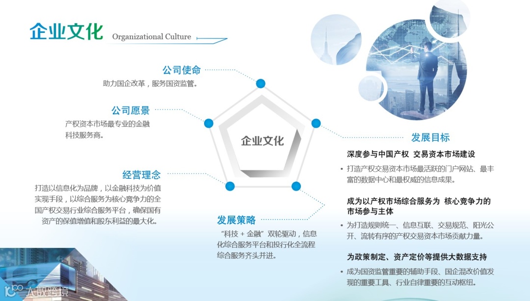 在投行化服务业务板块,形成了国企改革与国资交易培训、业务咨询、产权经纪业务、基金与资产管理等一站式的服务,先后承接了国企增资、混改以及国资委相关指数研究开发、风险监测等项目和课题,致力于为国企改革、国资监管提供更加专业化的服务。