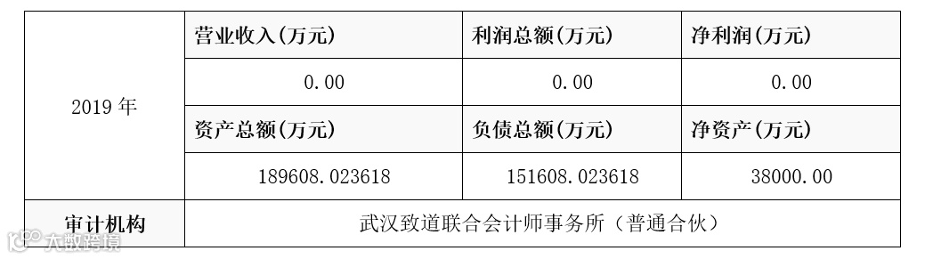 (4)根据转让方提供的湖北盛德联合会计师事务所出具的《审计报告》(鄂盛审字【2020】第27号)截止至2019年6月30日反映鄂州新胜建设工程有限公司营业收入0元、营业利润0元、净利润0元、资产总额1,775,817,219.62元,负债总额1,400,817,219.62元,所有者权益总额375,000,000.00元。