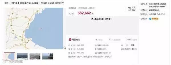 该消息在网上迅速传播,进入阿里巴巴司法拍卖网站搜索发现,5月28日,还真有一则“日照车牛山岛开发有限公司海域使用权”拍卖,拍卖成交价正是68.2662万。
