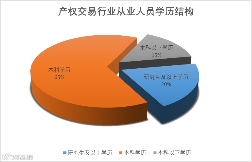 按交易机构本部聘用员工情况统计,截至2018年年底,全国产权交易机构员工总人数4320人,相比2017年(3348人)增长29%。按最高学历统计,研究生及以上学历员工870人,占比20%;本科学历员工2788人,占比65%;本科以下学历员工662人,占比15%。