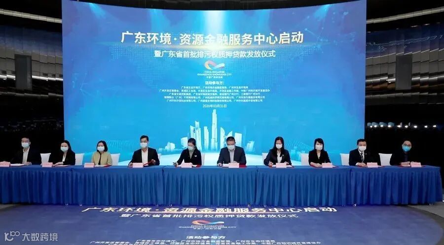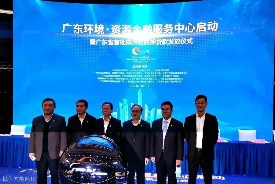 3月31日,广东环境·资源金融服务中心在黄埔区中新广州知识城宣布启动,广东省首批排污权质押融资项目贷款发放仪式同日举行。当天获得的融资支持达200亿元,完成质押融资4000万。