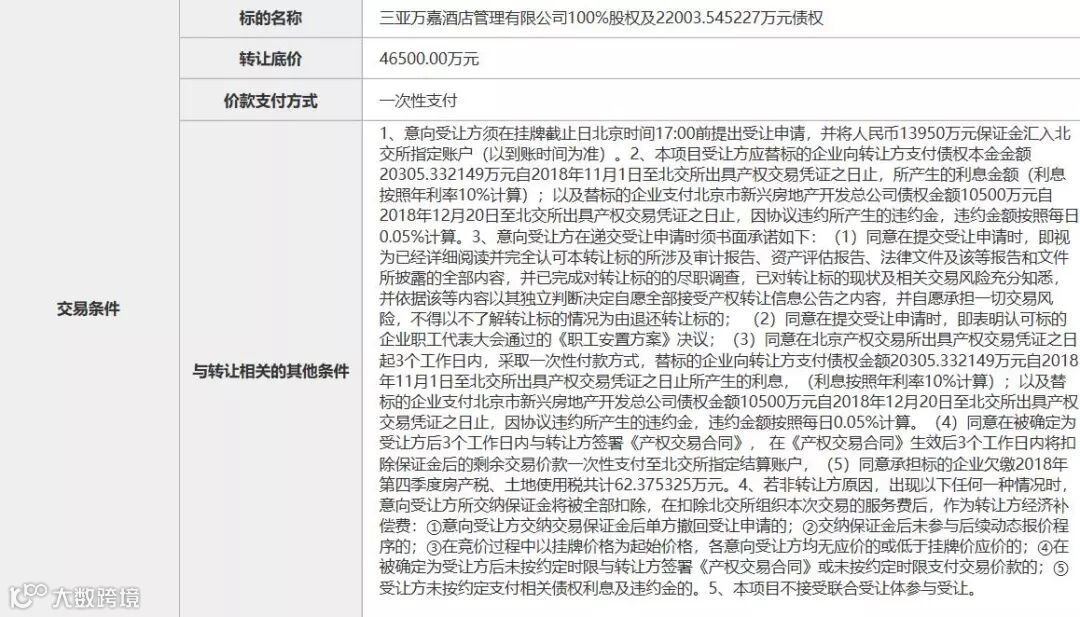 项目名称:三亚万嘉酒店管理有限公司100%股权及22003.545227万元债权