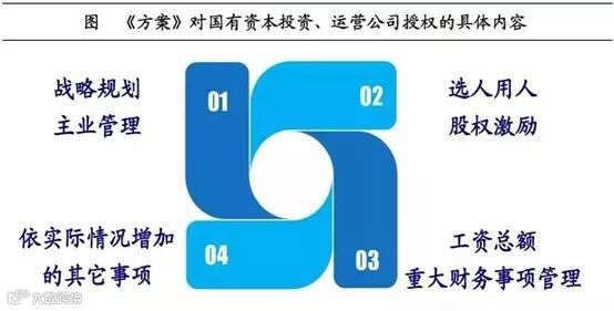 《方案》对于国有资本投资、运营公司授权的具体内容在分类开展的基础上进行了进一步明确,主要包括如下四个方面: