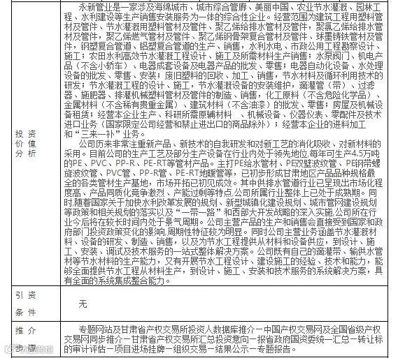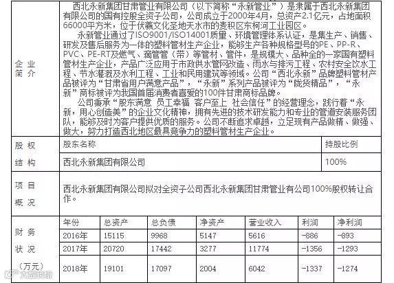 西北永新集团甘肃管业有限公司100%股权转让项目
