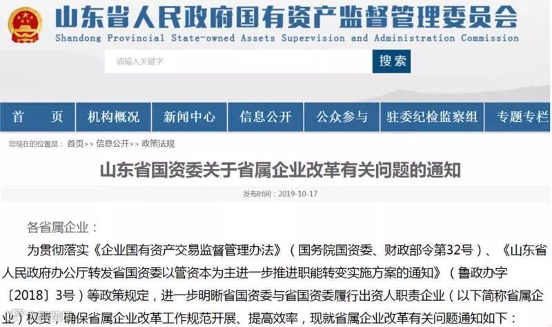 近日,山东省国资委发布