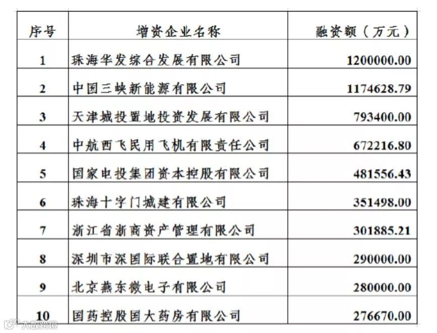 ▼按融资额排序前10大增资项目▼