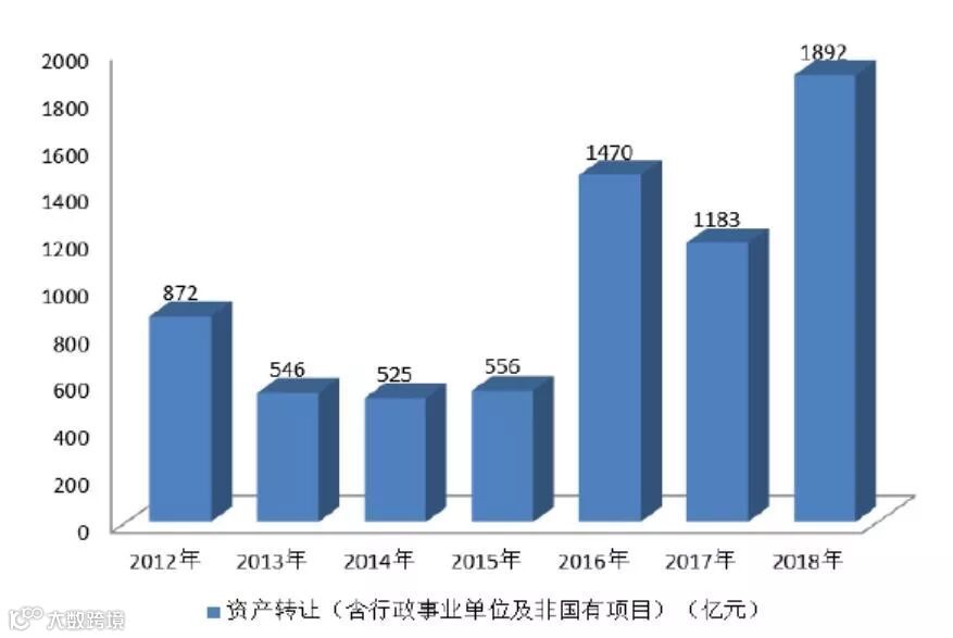 2018年共完成各类资产转让项目10.93万宗,相比2017年(8.65万宗)增长26%;交易额1892亿元,相比2017年(1183亿元)增长60%。