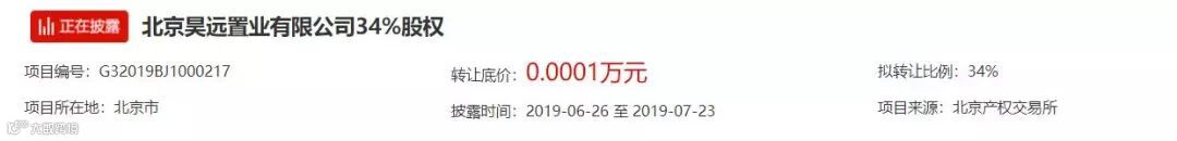 据全国产权行业信息化综合服务平台披露,6月26日,金茂旗下的天津北方博茂置业有限公司拟转让北京昊远置业有限公司34%的股权,转让底价1元。同时,路劲旗下的北京隽成房地产开发有限公司已将所持33%股权转让予中铁房地产。