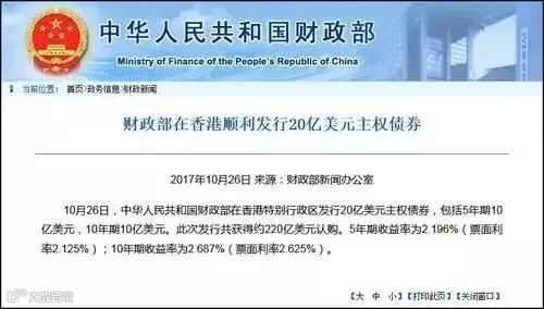 26日,中国在香港成功发行20亿美元的主权债券,结果被市场疯抢,获得了220亿美元的认购,为发行金额的11倍!