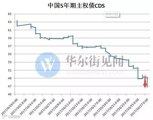 中国主权债CDS下跌,意味着市场对中国的信用预期提高。10月27日早间,中国5年期主权债的信用违约互换(CDS)下跌5个基点,创去年11月以来最大跌幅。