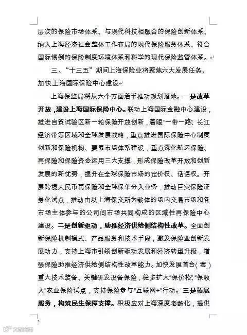 在保险资金运用方面,上海将培育保险资金运用中心,借助上海自贸区政策优势拓宽融资渠道,创新资金运用方式,提升投资能力。