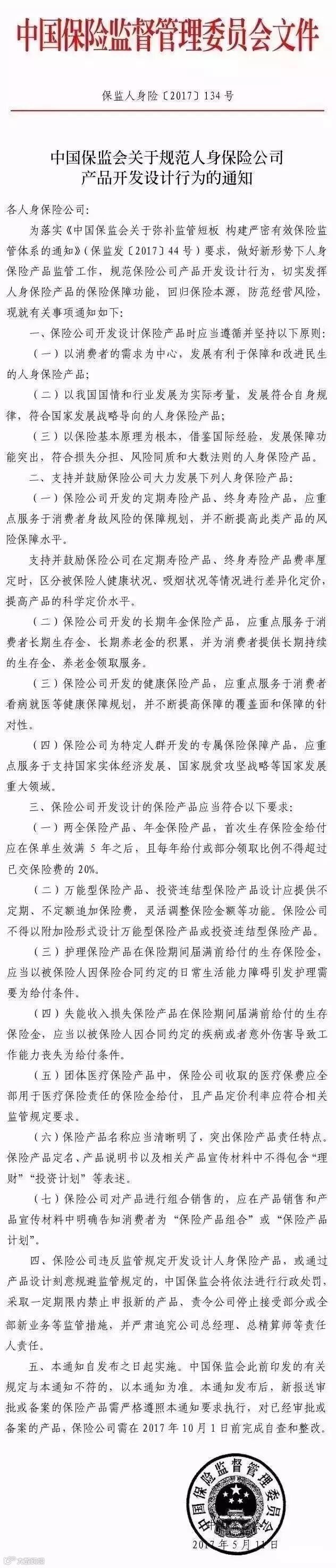 近日保监会下发人身险【2017】134号文件——《中国保监会关于规范人身保险公司产品开发设计行为的通知》,对人身险产品设计提出了“四项鼓励七项注意”,引发了整个保险市场极大震动。