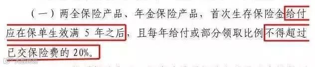 目前市场上有很多年金产品为了提升吸引力,做到了随缴随返,缴费当年,就给予一定比例的返还。这一规定将秒杀市场上一大批年金保险!年金保单生效5年后才可以领取生存金。生效即返还的、一周年即返还的、返还力度大于已交保费20%的产品,在限期整改的10月1日内,将会面临整改。