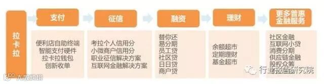 拉卡拉以支付业务为基础,逐步拓展其他金融业务为个人用户及小微商户提供综合普惠金融服务